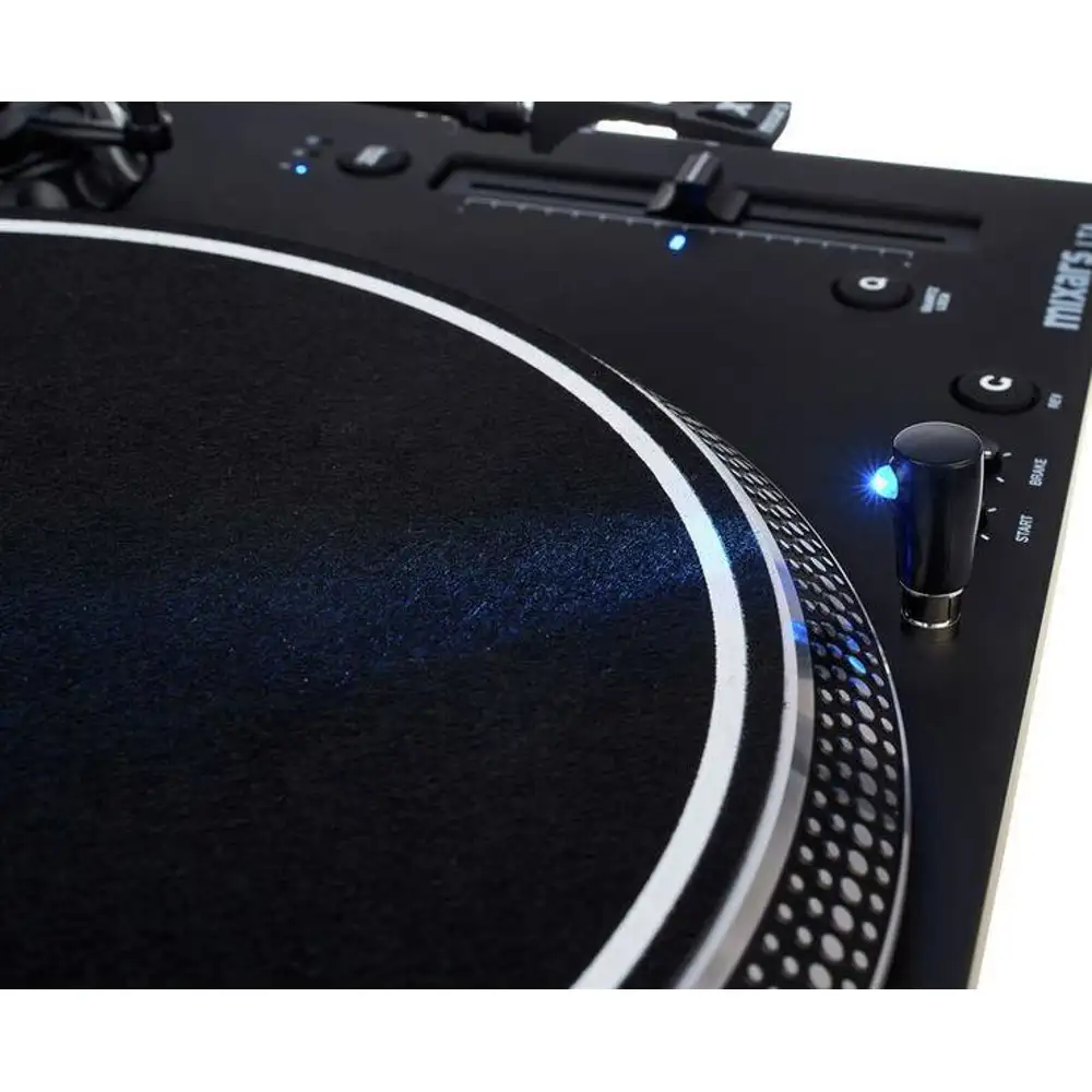 giradischi professionale con braccio dritto regolabile in altezza, pensato per le performance scratch, grazie al motore al quarzo ad alta precisione